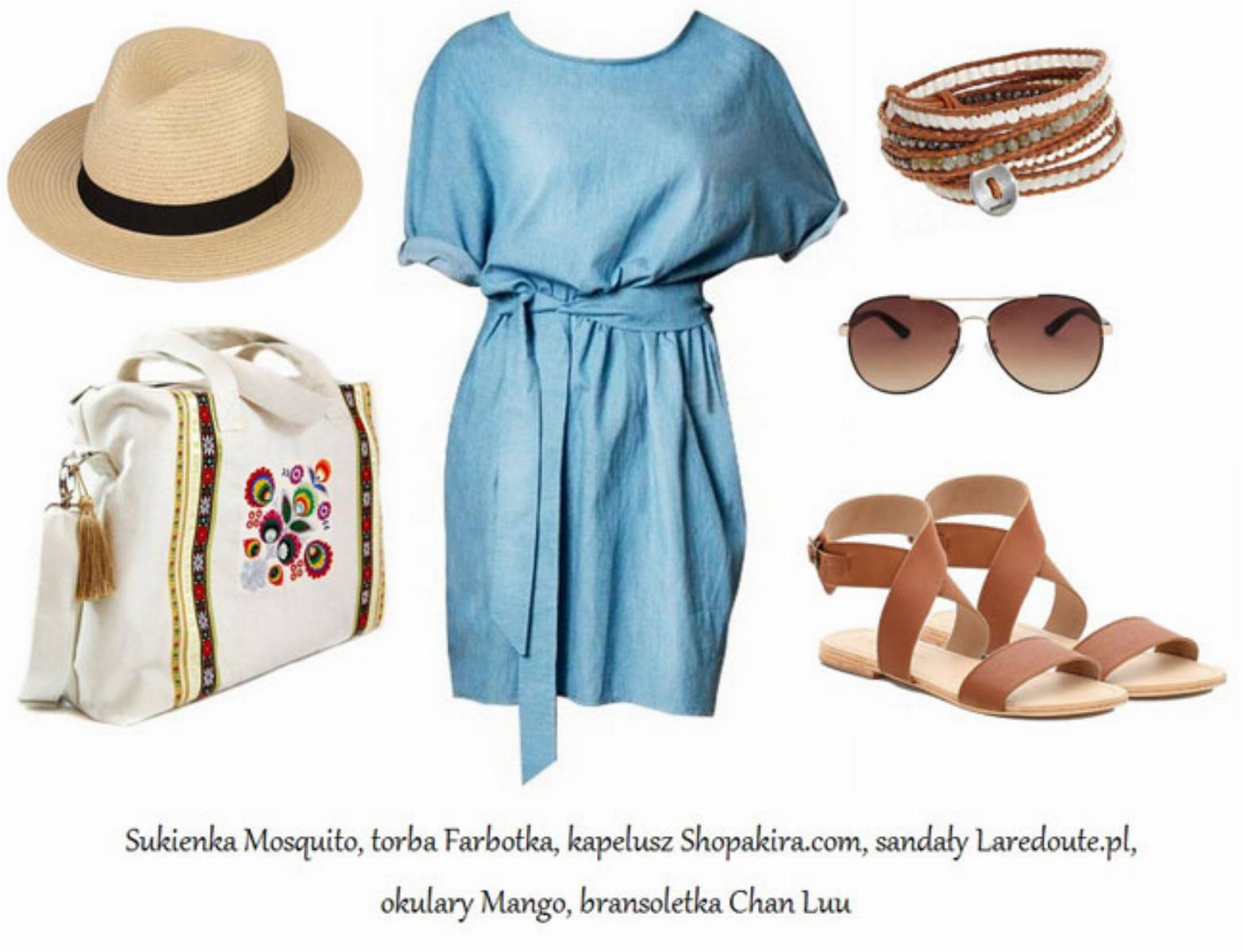 Denimowa sukienka to sprawdzony klasyk, dzięki któremu stworzycie modny i niezobowiązujący look. Idealny na lato! Z czym ją zestawić? Najlepiej z dodatkami w neutralnych kolorach – beżach, brązach czy bieli. Brązowe sandały, bransoletka z koralikami, aviatorki oraz kapelusz typu fedora świetnie ze sobą współgrają, a biała, lniana torba marki Farbotka ozdobiona barwnym haftem przykuwa wzrok i genialnie dopełnia całości!