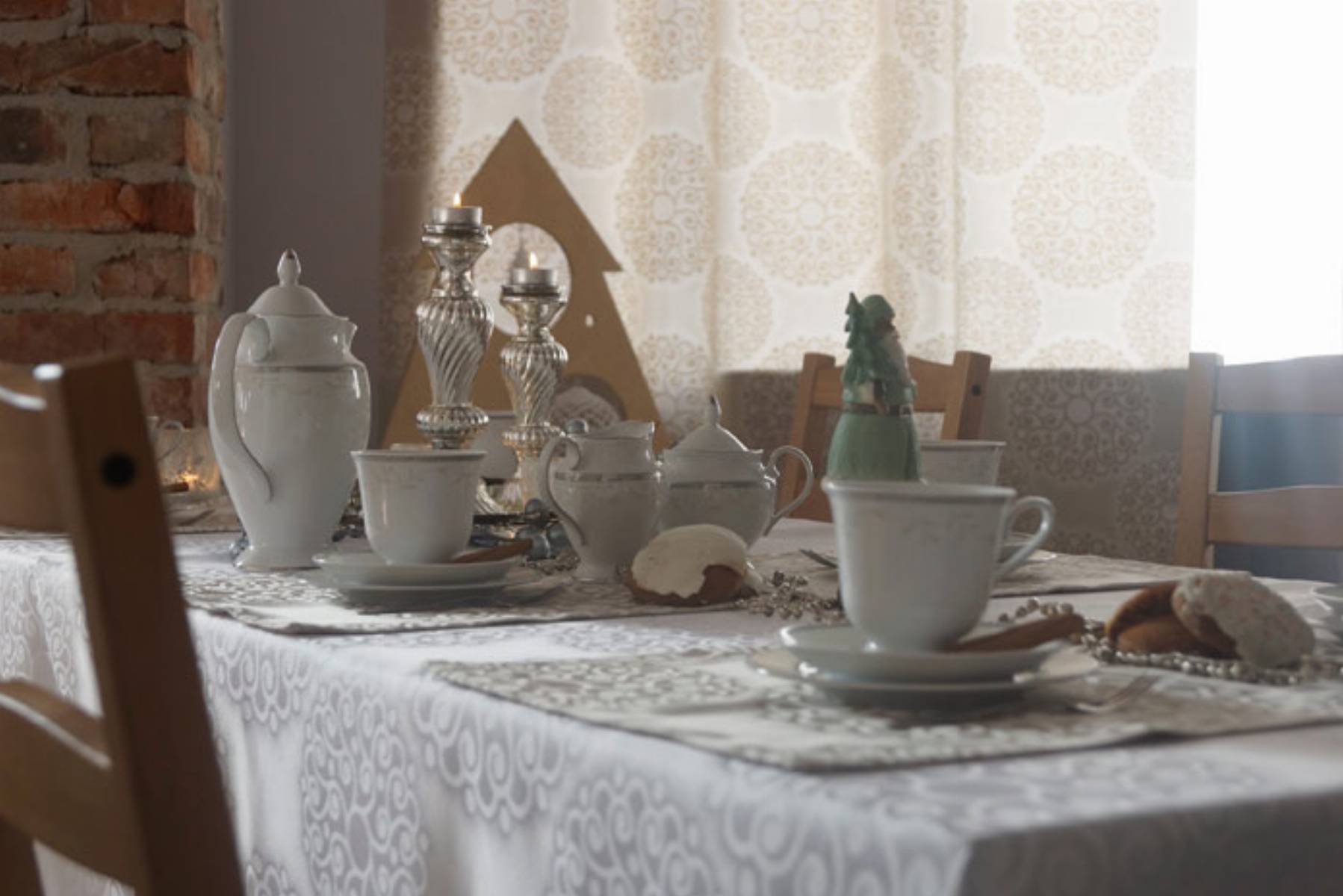 3. Rozmiar obrusa powinien być dopasowany do wielkości i kształtu stołu. Ważne, by z każdej strony blatu pozostawić zwis tkaniny o długości około 20 cm, aby swobodnie opadała ona ze stołu i jednocześnie nie przeszkadzała siedzącym przy nim gościom.