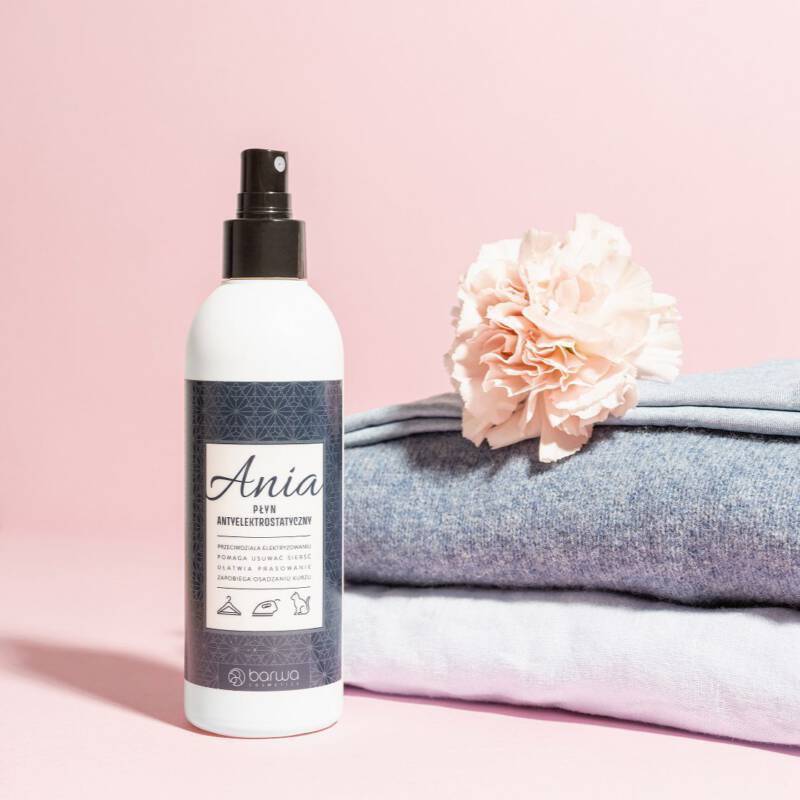 Ania Płyn elektrostatyczny BARWA zapobiega elektryzowaniu się wszelkiego rodzaju tkanin i materiałów, niezależnie od tego czy zostały wykonane z włókien naturalnych czy syntetycznych. Skutecznie zatem przeciwdziała niechcianemu elektryzowaniu się nie tylko ubrań, ale również dywanów, tapicerki samochodowej, koców, włosów syntetycznych i wielu innych. Ponadto, po użyciu pozostawia ubrania miękkie, przyjemne w dotyku i delikatnie pachnące. Ułatwia usuwanie sierści i zapobiega osadzaniu się jej na wszelkich tkaninach. Skutecznie pomaga zachować czystość na dłużej. Zabezpiecza tkaniny i powierzchnie przed nadmiernym przyciąganiem kurzu, pyłków, sierści. Przeciwdziała osadzaniu się kurzu na obudowach sprzętu elektronicznego.