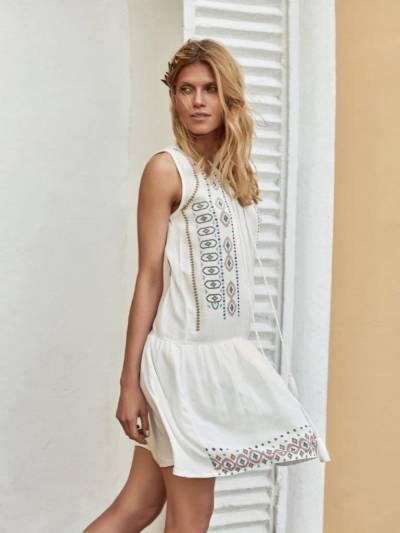 Pojawiły się także desenie takie jak laurowe liście, mżące nadruki z kropek czy drobne graficzne motywy nawiązujące do greckiej kultury. Całości dopełniają koronki, sploty, koraliki i wiązania rodem z antycznego stylu. Ubrania te są idealne na gorące, letnie dni, kiedy chcemy mieć na sobie jak najmniej, ale wciąż wyglądać elegancko i stylowo.