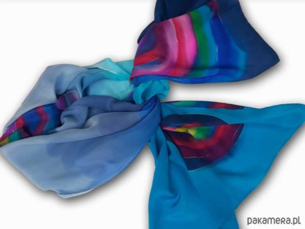 Ręcznie malowany szal z subtelnie rozmytymi, barwnymi plamami – Pakamera (jedwabie Agaty), 168 zł