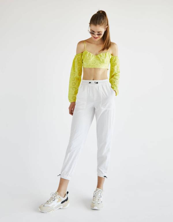 Festiwalowy neonowy top z hiszpańskim haftem ażurowym – Bershka, 29,90 zł