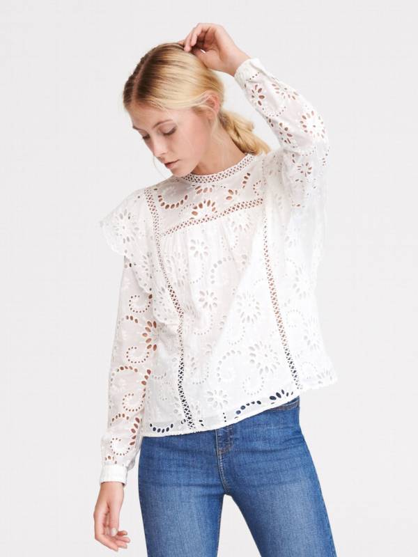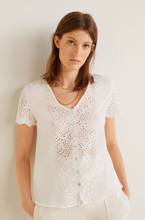 Biała bluzka z gęstym ażurowym wzorem – Mango, 69,90 zł