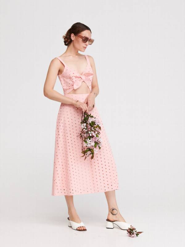 Bladoróżowa ażurowa sukienka z dwóch segmentów – Reserved, 119,99 zł