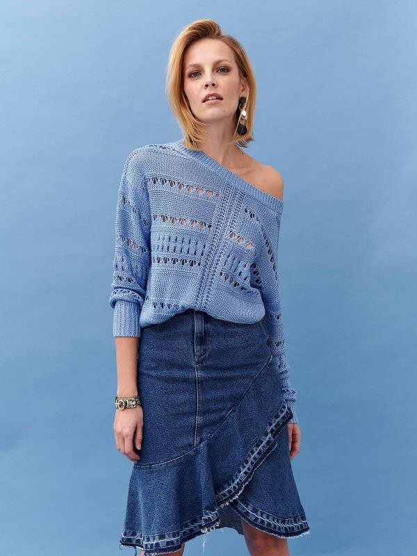 Ażurowy niebieski sweterek – Top Secret, 59,99 zł