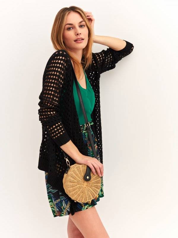 Czarny kardigan z dziurami o luźnym kroju – Top Secret, 49,99 zł