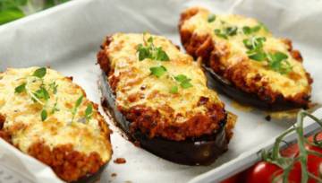 Bakłażany faszerowane mięsem z sosem czosnkowo-ziołowym