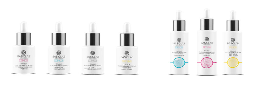 W skład linii BasicLab Esteticus wchodzą trzy kuracje dedykowane pielęgnacji twarzy oraz jedna przeznaczona pod oczy. Te pierwsze, dzięki połączeniu działania kwasu ferulowego i witaminy C skutecznie rozjaśniają przebarwienia powstałe na skutek długotrwałej ekspozycji na słońce czy zmian hormonalnych. Pomagają usunąć potrądzikowe blizny, a jednocześnie stymulują fibroblasty do produkcji kolagenu. Dzięki temu skóra staje się bardziej gęsta i jędrna, poprawia się jej napięcie i zwiększa gładkość. Produkty z witaminą C można stosować rano i wieczorem. Aplikowane rano skutecznie chronią przed negatywnym działaniem promieni słonecznych.