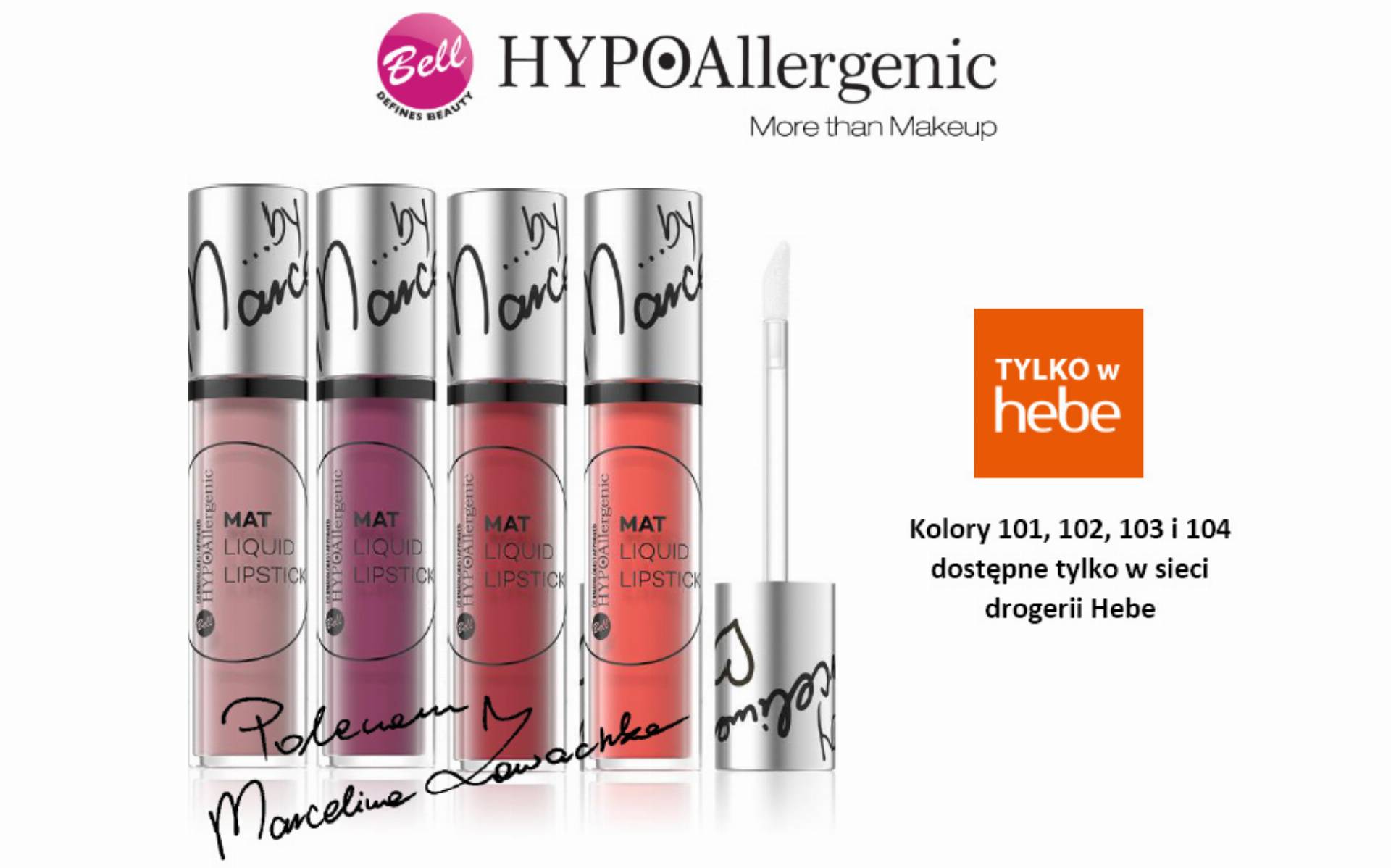 HYPOAllergenic Mat Lip Liquid by Marcelina – HYPOAlergiczna pomadka matowa w płynie: Kolekcja matowych pomadek współtworzonych z ambasadorką marki Bell HYPOAllergenic Marceliną Zawadzką i inspirowanych ważnymi dla niej miejscami na całym świecie. Intensywnie napigmentowane pomadki pozostawiają trwały, matowy efekt makijażu, a modne kolory podkreślają naturalne piękno ust.