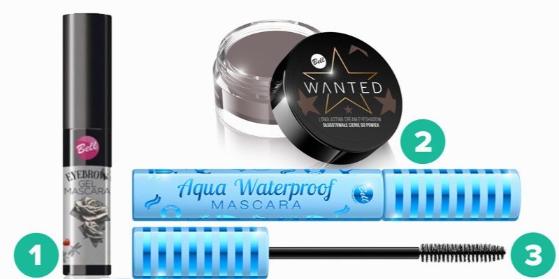 Jesienią czy zimą często narzekamy na niekorzystne warunki pogodowe takie jak deszcz, śnieg czy mżawka. Efektem takich zawirowań może być np. rozmazany tusz do rzęs. Jak tego uniknąć? Postaw na mascarę wodoodporną! Taki produkt to prawdziwe zbawienie nie tylko latem. Nałóż mascarę Waterproof Mascara (3), poczekaj aż zaschnie i makijaż oka będzie gotowy