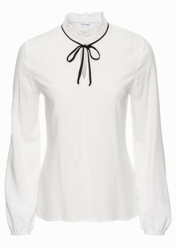 Luźna bluzka koszulowa z czarną kokardką – Bonprix, 54,99 zł