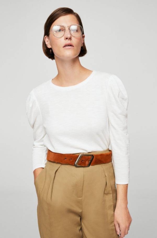 „Duque”, bluzka z okrągłym dekoltem i lekko bufiastymi rękawami – Mango, 69,90 zł
