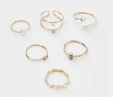 Zestaw 6 pierścionków ze sztucznymi perełkami – Pull&Bear, 29,90 zł