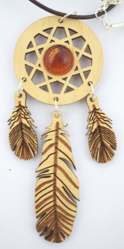 Drewniany wisiorek z bursztynem – El-landia, 71 zł