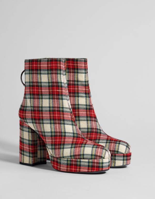 Botki w czerwono-białą kratę – Bershka, 159 zł