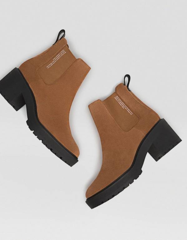 Botki z ekologicznej skóry na traperowej podeszwie – Stradivarius, 199 zł