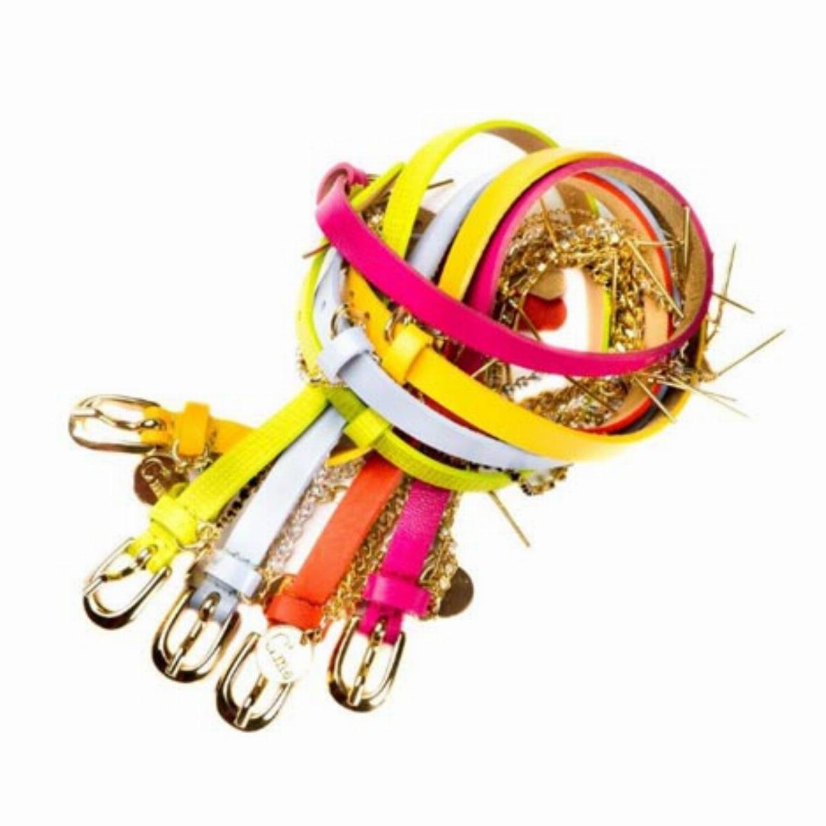 Bransoletki-paski to sposób na nietuzinkową stylizację i dawkę bezpiecznej, modowej brawury. Do wyboru są różne wzory i faktury, jak również różnej szerokości opaski. Fluorescencyjne mankiety świetnie komponują się z inną biżuterią, wzbogacając jednocześnie całą stylizację, choć bardzo dobrze też wyglądają w zestawieniu obok siebie. To prawdziwe szaleństwo barw.