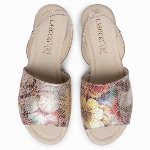 Sandały w bajkowe kwiaty o wężowej fakturze – Lasocki, 95,99 zł