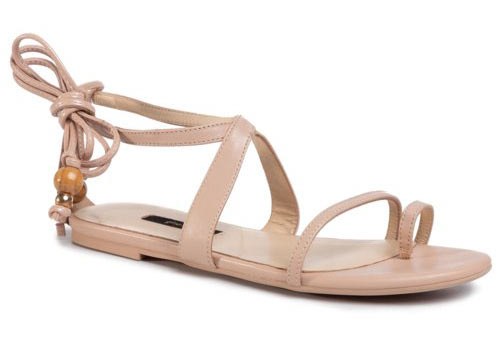 Wiązane japonki nude z drewnianymi koralikami – 191,99 zł