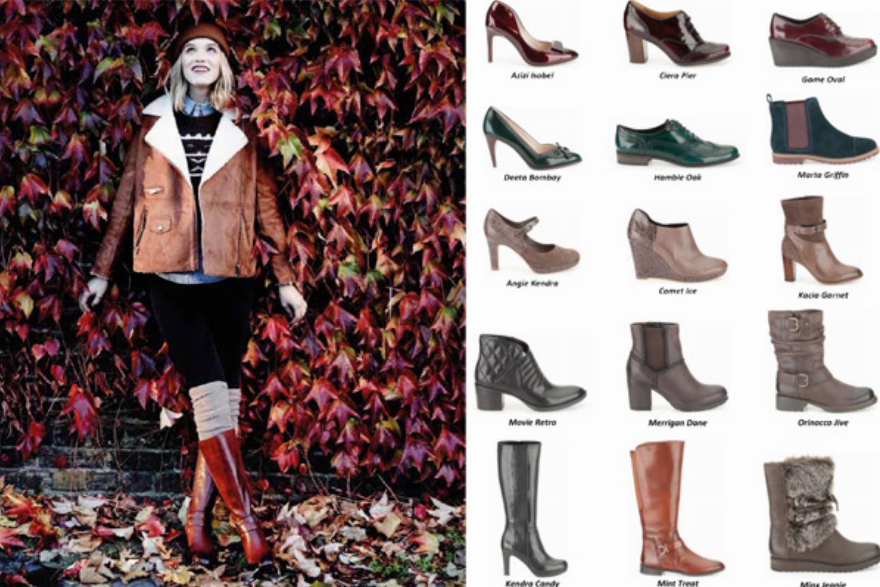 CLARKS. Tradycyjną paletę jesienno-zimowych barw: czerni i brązów uzupełniają kolorystyczne hity sezonu: taupe (szarobrązowy), odcienie czerwieni, burgund, zieleń, ciepły oranż oraz niebieski.