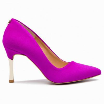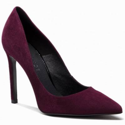 Zamszowe szpilki w kolorze fuksji na niewysokim skórzanym obcasie – R. Polański, 249 zł