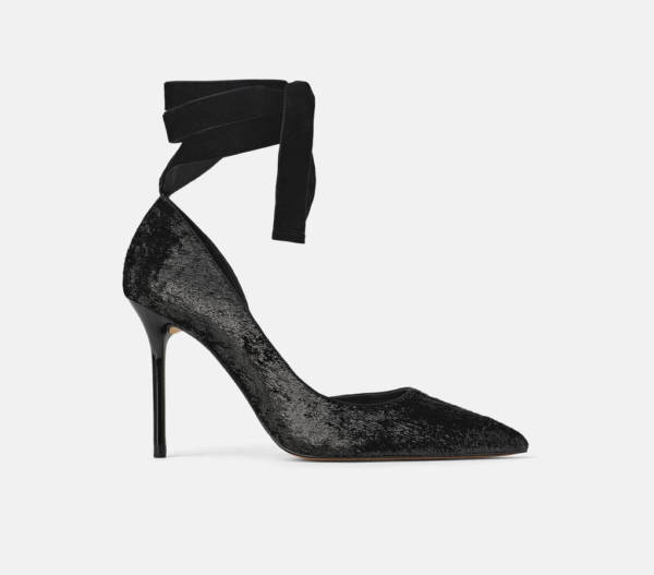 Czarne szpilki z wiązaniem i błyszczącym wykończeniem – ZARA, 139 zł