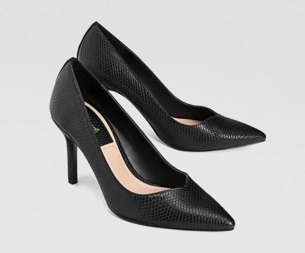 Czarne czółenka z „wężową” fakturą – Stradivarius, 89,90 zł
