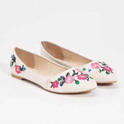 Balerinki nude z kwiatowymi haftami – Sinsay, 39,99 zł