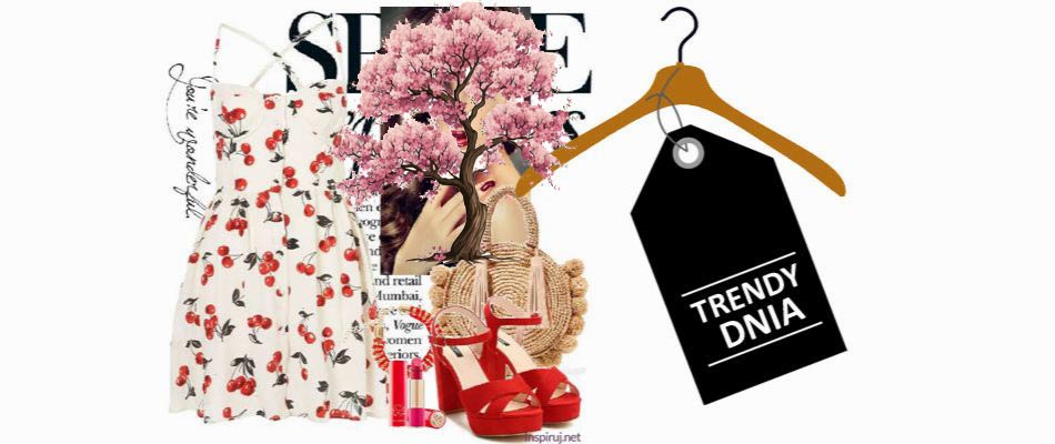 Chociaż czerwcowa pełnia księżyca tradycyjnie jest nazywana Truskawkową, tego lata powinna raczej nosić nazwę wiśniowej – motyw wiśni opanował bowiem nie tylko sklepy projektantów mody i drogie butiki, ale też popularne sieciówki, powtarzając się na koszulkach, sukienkach, dżinsach i butach, a także na kolczykach i zawieszkach naszyjników czy bransoletek. Dzisiejsza stylizacja to kreatywny pomysł na to, jak zestawić czarujące i – wcale nie kwaśne – wiśnie z elementami, które dodadzą im lekkości i letniego romantyzmu. Nasza inspirantka wybrała białą sukienkę z gęstym, wiśniowym nadrukiem od Topshop i skomponowała ją z czerwonymi sandałkami na słupku, dużą torebką z plecionki (idealną zarówno na plażę, jak i na wiosenny spacer połączony ze spontanicznym piknikiem w wybranym miejscu), czerwoną bransoletką Qiosque i szminką o intensywnym kolorze – niekoniecznie czerwonym. W ten sposób powstał outfit, który można uznać za modowe odwzorowanie wiśniowego sadu w środku wakacji! Świeży i słodki, przyciągnie uwagę niejednego obserwatora, roztaczając wokół noszącej go dziewczyny aurę naturalnego uroku!