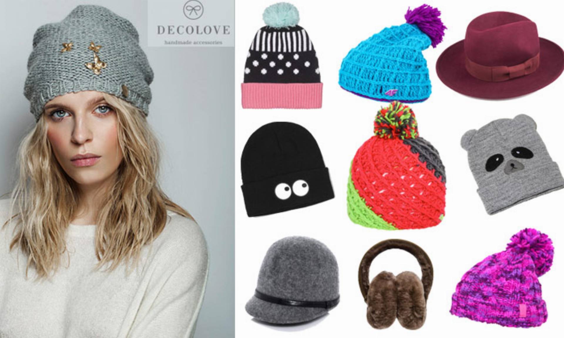 Nowa kolekcja DECOLOVE Fauna Bellezza na jesień i zimę to stylowe i ciepłe nakrycia głowy na każdą pogodę. Znajdziemy tu nowoczesne aksamitne Baseballowe czapki wiązane na wstążkę, stylowe wełniane kapelusze oraz miękkie i bardzo ciepłe czapy z wełny bardzo dobrej jakości. Akcesoria ozdabiane są ręcznie ozdabiane kryształkami Swarovskiego, mosiężnymi aplikacjami w kształcie owadów, futrzanymi pomponami oraz jedwabnymi broszkami. Kolekcja to kilkanaście modeli, które można zamówić w wybranym kolorze oraz poprosić aby zostały ozdobione według własnego pomysłu.