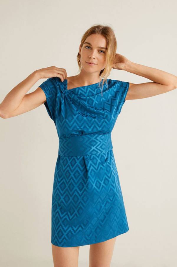 Błękitna sukienka w geometryczny wzór – Mango, 199, 90 zł