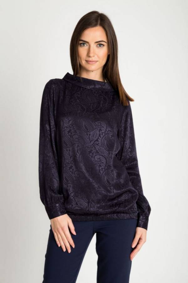 Granatowa bluzka-bombka z żakardu – Quiosque, 149,99 zł
