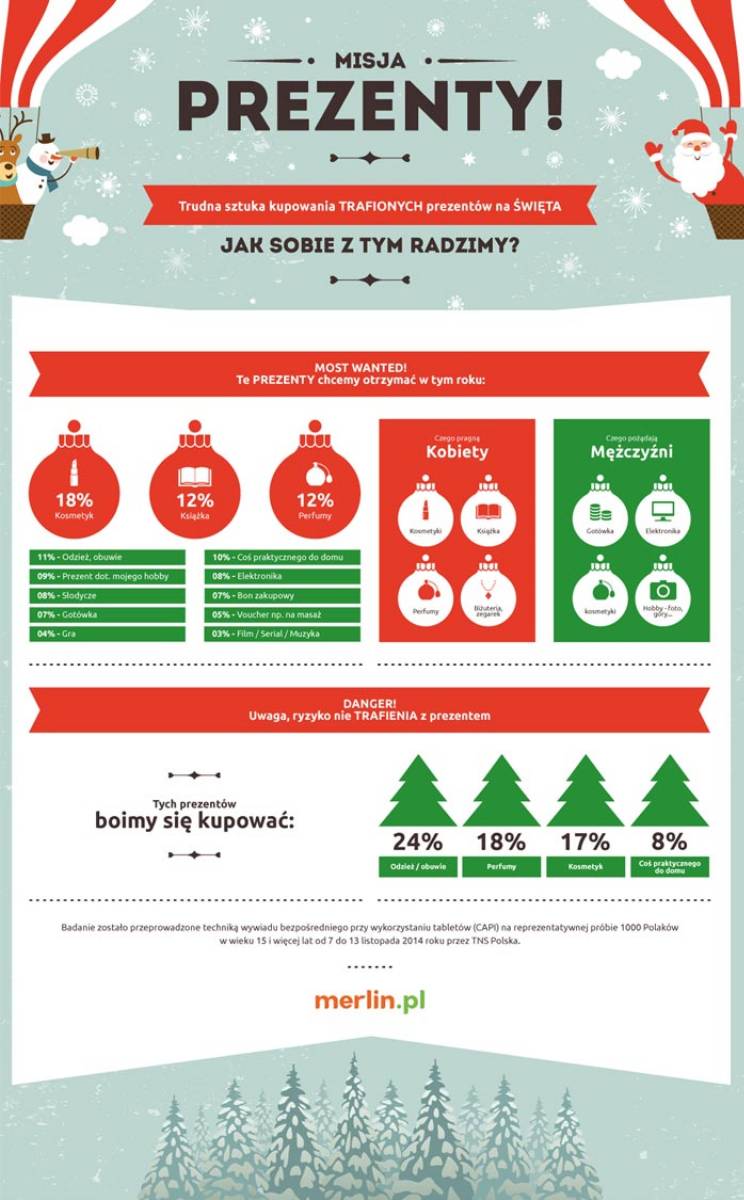 Większość kobiet lubi kupować gwiazdkowe upominki – na świąteczne zakupy wybierają się chętniej niż mężczyźni. Polki martwią się jednak tym, czy prezent trafi w gust drugiej połówki, co potwierdza najnowszy raport TNS POLSKA na zlecenie Merlin.pl. Jak radzimy sobie na świątecznych zakupach? Jakie są wymarzone prezenty dla faceta