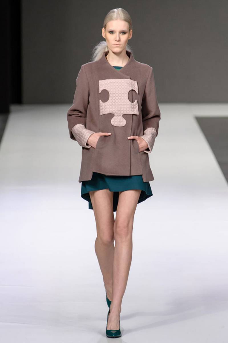 Wzory zostały zaprojektowane, tak aby można było je dowolnie połączyć. W kolekcji można znaleźć m.in. długie i krótkie płaszcze, spodnie, spódnice, tuniki, a także nieodłączny element kobiecej garderoby – sukienkę w kształcie litery A. W oczy rzuca się niesamowita precyzja wykonania i dbałość o szczegóły. Nie powinno to jednak być zaskoczeniem, ponieważ MarylaW zajmuje się także modą ślubną, która wymaga skupienia na ornamentach, drapowaniach i szczypankach. Kolekcja utrzymana jest w trzech podstawowych kolorach: szmaragdowej zieleni, pudrowego różu oraz ciepłej bieli. Projektantka nie ucieka także od metalicznych akcentów i kontrastowych wstawek.