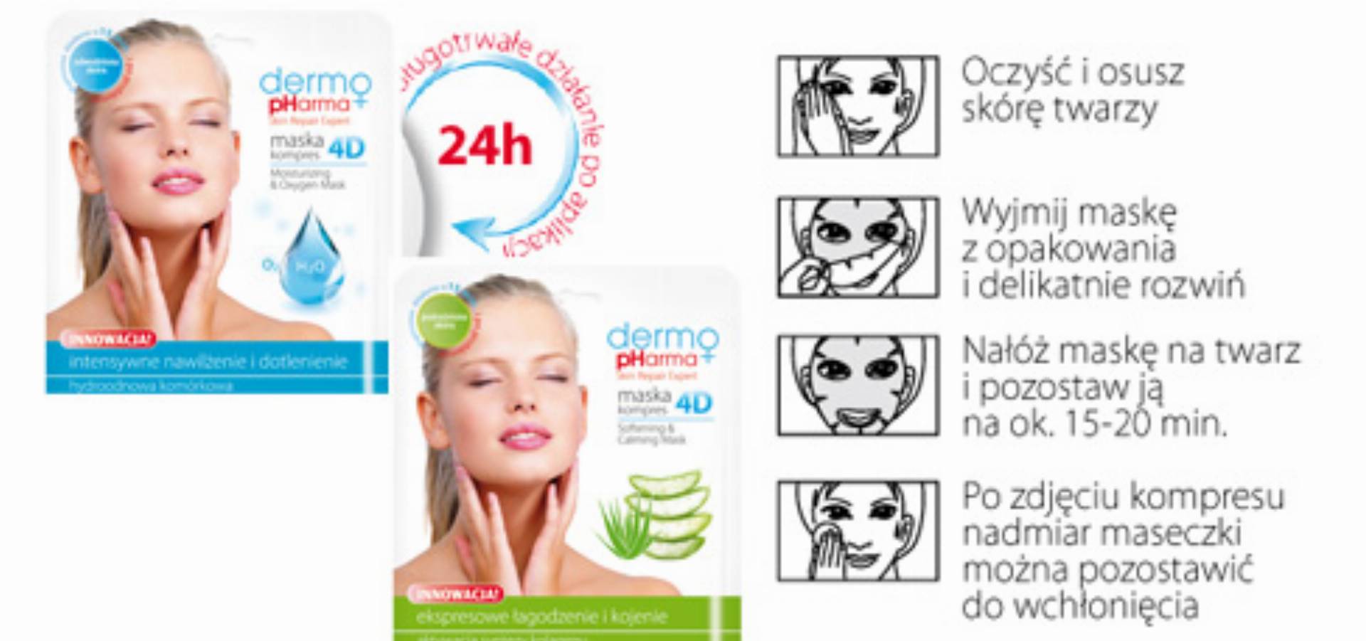 DermoPharma prezentuje maskę kompres 4D, nasączoną aktywnymi składnikami, idealnie dopasowującą się do kształtu twarzy, równomiernie rozprowadzającą skoncentrowaną formułę oraz skutecznie działającą w kierunku wnętrza skóry. Jest to profesjonalny zabieg na twarz do samodzielnego wykonania w domu.