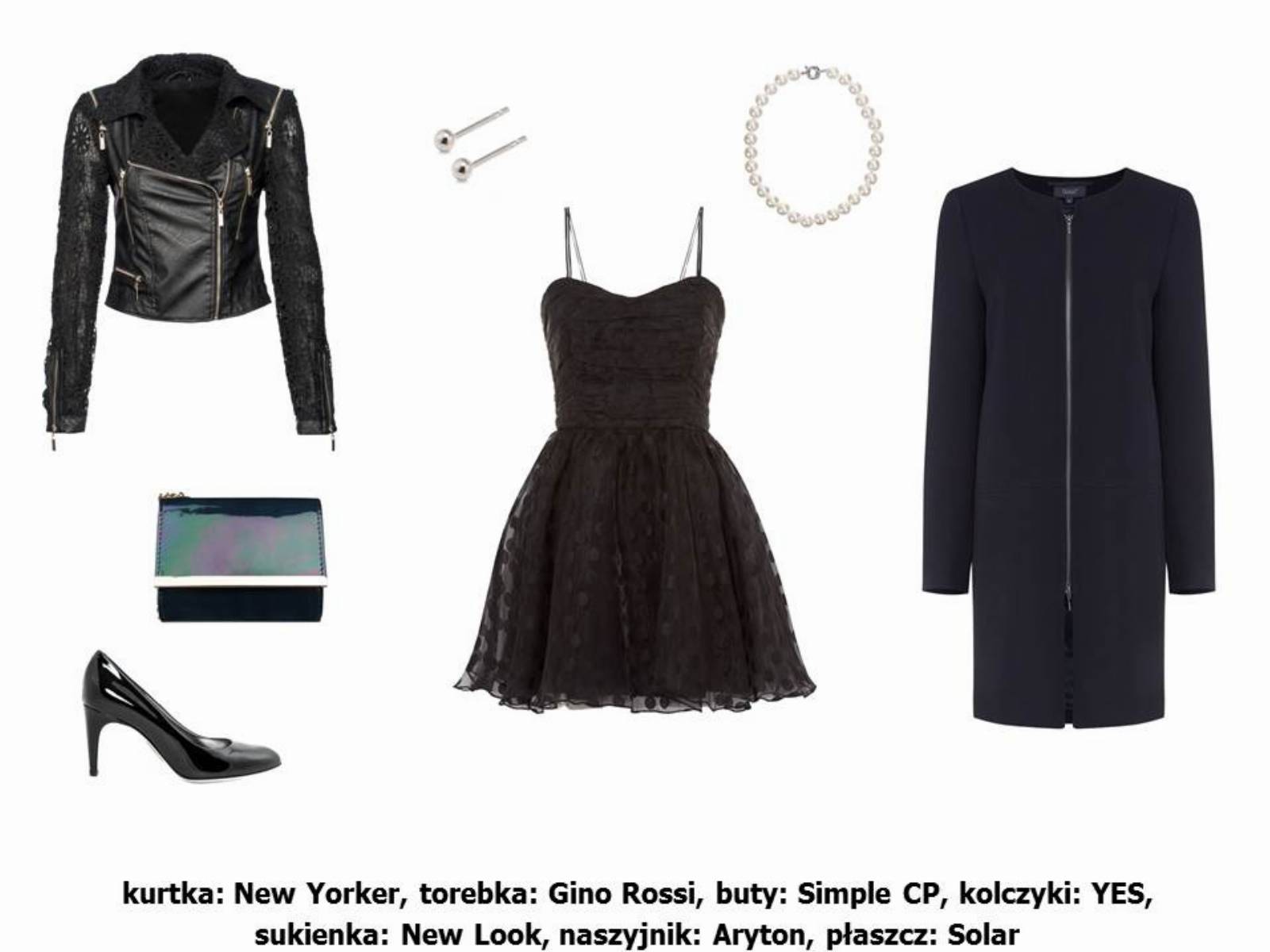 Krótka tiulowa sukienka to synonim pełnej uroku dziewczęcości. Odważnie baw się trendami – narzuć na nią ramoneskę z koronkowymi rękawami. Na moment przejścia załóż małą torebkę z łączonych materiałów ze złotymi wykończeniami – pomieści wszystkie niezbędne kobiecie rzeczy. W Sylwestra nigdy za wiele blasku, dlatego na wielkie wyjście idealne będą lakierowane obcasy na smukłej szpilce – przetańczysz w nich całą noc. Zestaw zyska eleganckiego charakteru dzięki subtelnej biżuterii – naszyjnikowi z pereł i srebrnym kolczykom.