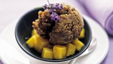 Przygotowanie: Zamrozić na 5-6 h mango i maliny. Następnie wszystkie składniki zmiksować, potem ponownie włożyć do zamrażalnika na 1 h. Przed podaniem odstawić na 10 minut w temperaturze pokojowej. Porcjować, używając gorącej łyżki do nakładania lodów.