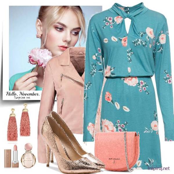 Drugi zestaw bazuje na połączeniu słodkich, dziewczęcych odcieni – koloru letniego nieba oraz różowej waty cukrowej. Uwagę zwracają markowe szpilki Guess mieniące się niczym złotka i doskonale harmonizujące z pastelowymi odcieniami całości. Inspirantka nie zapomniała też o zwracającej uwagę torebce od Patrizii Pepe, kolczykach z chwościkami podkreślającymi przemyślaną kolorystyczną kompozycję oraz dopasowanej szmince i dobrych perfumach.