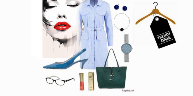 Koszulowa sukienka SET w odcieniu jasnego błękitu to strój doskonały zarówno do pracy, jak i na spotkania z przyjaciółmi. Zestawienie jej z czółenkami w głębszym odcieniu niebieskiego, przywodzącym na myśl morską wodę, dodaje stylizacji elegancji. Drobna, ale wyrazista biżuteria w odcieniach granatu i czerni oraz elegancki zegarek i okulary dopełniają wrażenia swobodnej elegancji. A do tego kontrastująca, ciemnozielona torebka, w której zmieszczą się wszystkie potrzebne rzeczy, i… błyszczyk w soczystym kolorze. W końcu trwa wiosna, więc warto przełamać powagę odrobiną radości i figlarności.