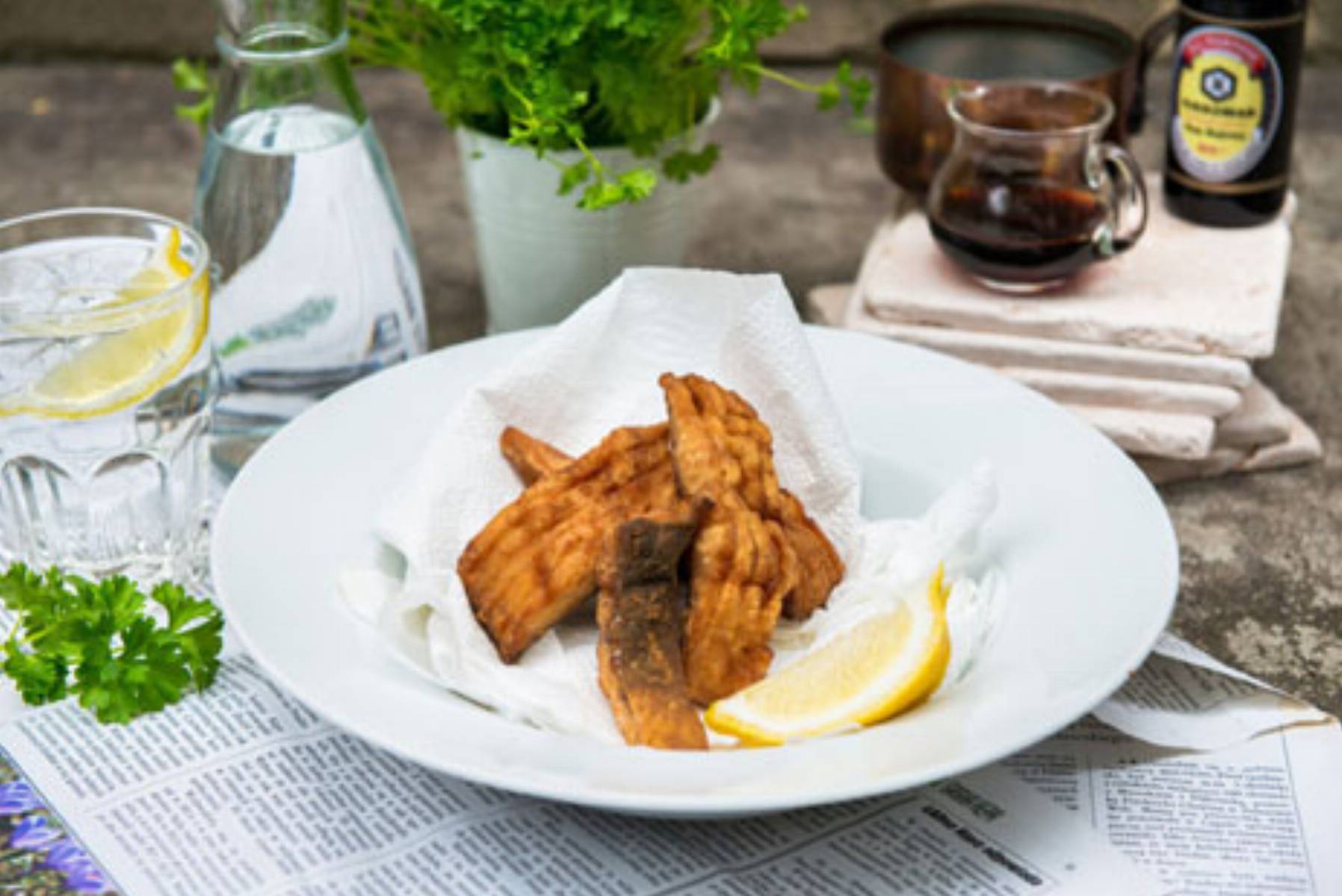 Karp smażony „bez ości” z sosem sojowym + szczypiorek