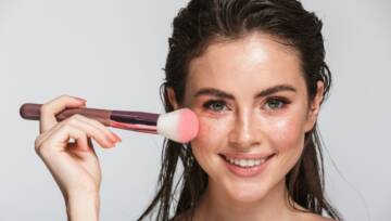 10. Na szczycie kości policzkowych nanieś rozświetlacz. Nieco produktu możesz także nałożyć pod łuki brwiowe, przy linii łez czy nad górną wargą.