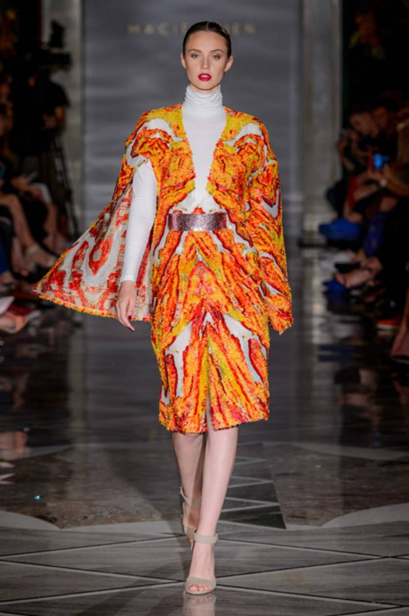 Podczas pokazu, który odbył się 12 czerwca br. w Teatrze Wielkim w Warszawie, zaprezentowano 34 sylwetki, które zachwyciły kolorami i bogatymi zdobieniami. Nie zabrakło charakterystycznych dla projektanta haftów oraz kryształków Swarovskiego. Wśród materiałów użytych w kolekcji dominowały jedwabie, żakardy, zwiewne muśliny, kaszmir czy wysokogatunkowe ekologiczne futra.