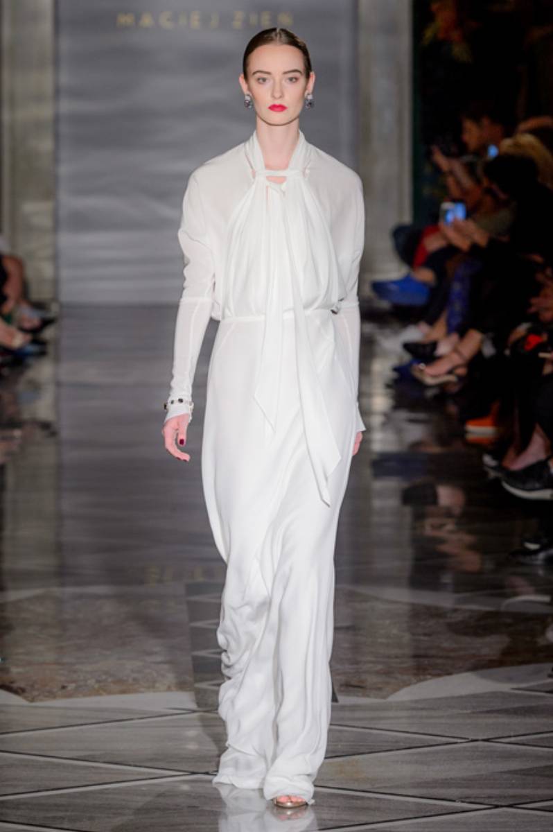 Maciej Zień po raz kolejny zaskoczył widzów pokazu niezwykłym kunsztem artystycznym kolekcji, w której znalazły się ultrakobiece kreacje utrzymane w eleganckim charakterze. W propozycjach projektanta uchwycono różnorodne osobowości Pierwszych Dam, które pełniąc tak ważną rolę w kraju były dla wielu obywatelek ikonami stylu, wzorem określonych zachowań społecznych.