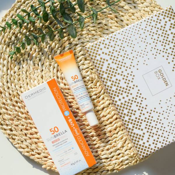 Wymiennie w pudełku znalazł się również ultralekki ochronny krem koloryzujący SPF 50 od Dermedic Sunbrella, który gwarantuje skuteczną i długotrwałą ochronę przed promieniowaniem UVA, UVB I IR – SPF 50. Wyrównuje on koloryt skóry i rozświetla ją, jednocześnie zapewniając odpowiednie nawilżenie.