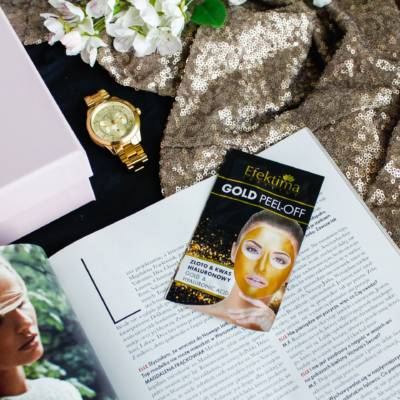każdego rodzaju skóry. W najnowszej edycji BeGlossy, “Gorączka Złota”, znajdziesz wymiennie jedną z dwóch maseczek marki Efektima. HIALU- LIFT to hydrożelowa maska na twarz, która za sprawą idealnie dobranych składników aktywnych poprawia kondycję zmęczonej i poszarzałej cery. Tuż po zabiegu skóra twarzy staje się wyraźnie wygładzona, zmarszczki są mniej widoczne, a cera promienna. Maska do twarzy GOLD