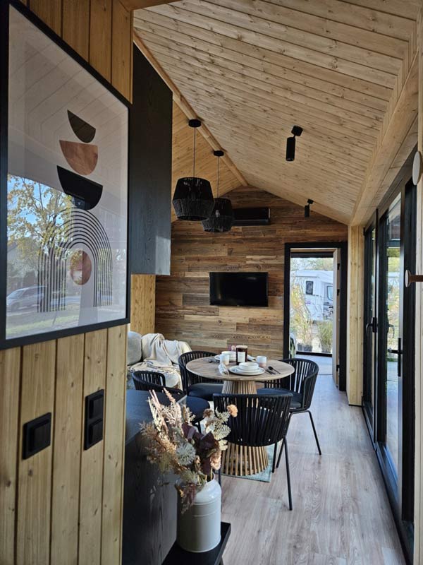 Przede wszystkim ich konstrukcja opiera się na przemyślanym projekcie architektonicznym, który pozwala na maksymalne wykorzystanie dostępnej przestrzeni. Przykładem jest model MHouse One o powierzchni 35 m², który mimo kompaktowych wymiarów oferuje wszystko, czego potrzeba do komfortowego życia: dwie sypialnie dwuosobowe, salon z aneksem kuchennym oraz funkcjonalną łazienkę z prysznicem.