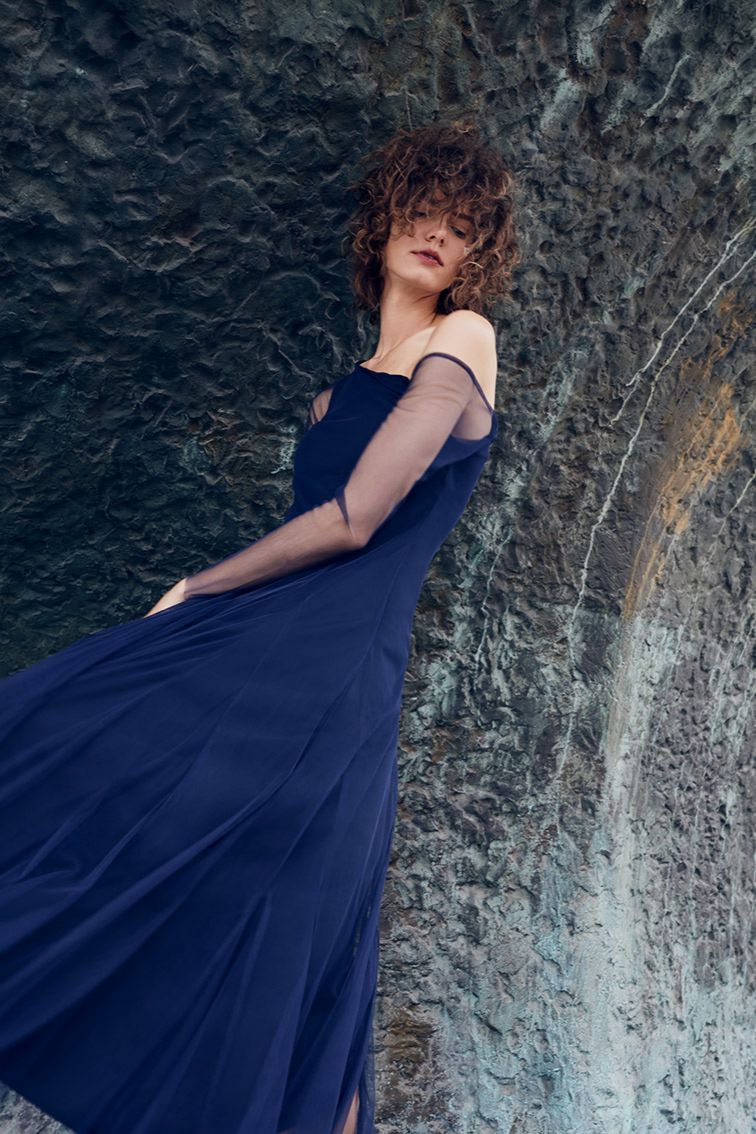 W kolekcji odnajdziemy również suknie na specjalne okazje, idealne podczas świątecznych uroczystości lub karnawału. Pierwsza z nich to długa, rozszerzana suknia z tiulu, której góra ma asymetryczny dekolt odkrywający jedno ramię. Druga suknia została uszyta z zamszowanej dzianiny, jest dopasowana w talii i rozkloszowana na dole, posiada wydłużony dekolt z troczkami zawiązywanymi pod szyją.