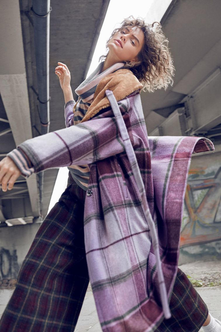 Wśród gamy okryć na jesień i zimę uwagę przyciągają limitowane modele płaszczy z włoskich wełen, a szczególnie płaszcz w fioletową, najmodniejszą w tym sezonie kratę, do którego dołożono etolę z ekologicznego futerka. Na większe mrozy polecamy płaszcze w całości z futra imitującego kożuszek.