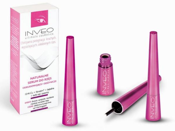 INVEO Naturalne serum do rzęs odbudowujące i odżywcze – wzmacnia rzęsy, uelastycznia je, nadaje im zdrowy blask, a także stymuluje ich wzrost. Bogata kompozycja naturalnych ekstraktów roślinnych – m.in. z kiełków soi, pszenicy, ekstraktu z żeń-szenia, wąkrotki azjatyckiej, baikaliny oraz kompleksu peptydowego z miedzią stymuluje regenerację i wzmacnia ich strukturę. Serum polecane jest do pielęgnacji kruchych, wypadających, przerzedzonych i osłabionych rzęs, ale również do pielęgnacji rzęs zdrowych, w celu utrzymywania ich w doskonałej kondycji.