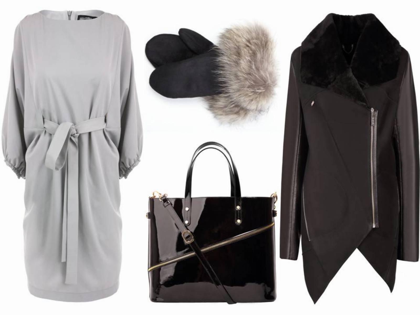 Sukienka – Midori/midori.pl, kurtka – Boca/boca.pl, buty – Caprice/caprice.pl, szal – Gena/ gena.pl, torebka – antbag by ania/antbags.pl